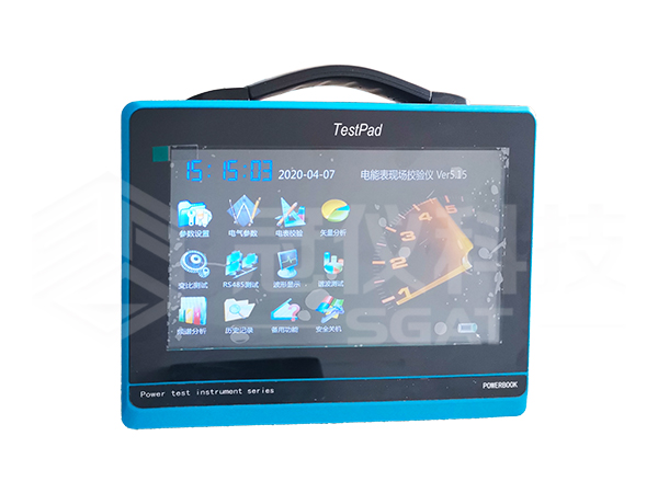 SGAT8238平板触控式电能表现场校验仪采用高端嵌入式控制板,专用实时多任务操作系统,以10寸大屏幕真彩色液晶作为显示器,全中文图形化操作界面并配有汉字提示信息、多参量显示的液晶显示界面,人机对话界面友好,向量图显示及接线判断为检查电路的正确性提供了可靠的依据。高分辨率电容触控屏做为人机操作途径,操作手感好,简便易学。仪器内置大容量掉电不丢失数据存储器,可将现场校验数据保存下来,最多可存储60000组(可无限扩展)现场校验结果,可提供后台微机管理软件,通过U盘将记录文件导入计算机,实现微机化管理。